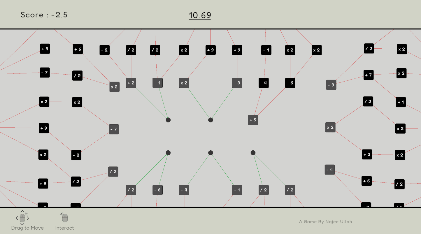 A short 20 second score game where you unlock mathematical operations in a skill tree and update your score